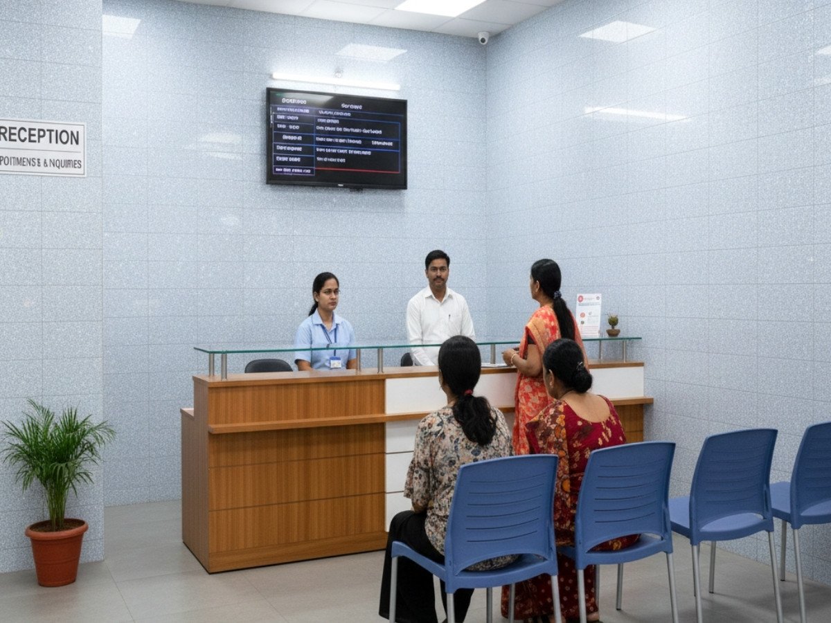- अस्पताल अंदर से व्यवस्थित और शांत दिखता है